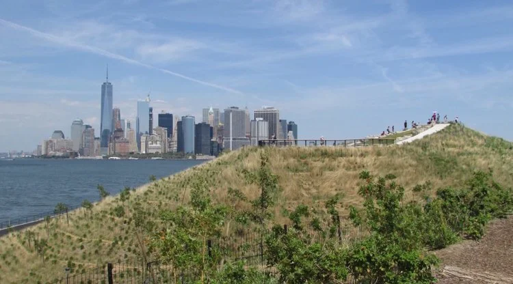 The quick backstory: Until recently, it had long been the home to an abandoned military base dating to 1811. the land was finally transferred to the City, Bill Clinton designated 22 acres to be put into a land preserve. The remaining 150 acres was re-imagined as a park by the Trust for Governor's Island, and non-historic building were demolished. Now, two phases of the Park are finally done: in 2014 the first phase was completed as 6 acres of parkland and pathways, a 10 acre hammock grove, and 14 acres of play areas. In 2016, Phase two, known as "The Hills", was completed which are giant hills rising 70' above NYC's harbor with paths and overlooks that use recycled materials from the harbor.