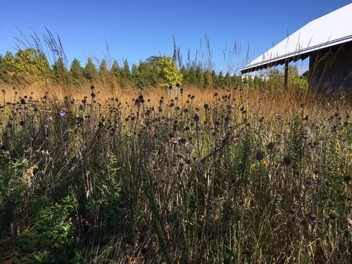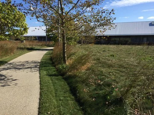 The landscape is a restored meadow and is described by it's designer, Douglas Reed as "dynamic and constantly changing".